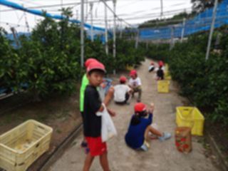 みかん狩りの様子です。その場でちぎったみかんはとても美味しかったようです。