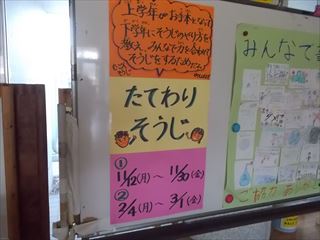 児童昇降口前に昨日の縦割り掃除の説明が掲示してありました。