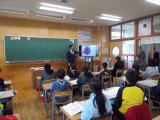 3年生が算数の時間に、黒板の図を指さしながら上手に説明していました。