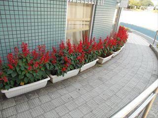 長洲小でも花を避難させたり、外のものが風で飛ばされないように片づけたりと