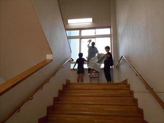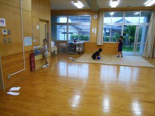 みんな一生懸命ほうきで掃いたり、雑巾で拭いたりしています。
