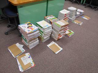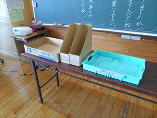 1年生は提出物を種類ごとに集めていました。
