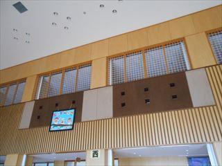 安全のためネットを設置していた多目的ホールの3階部分の工事も終わりました。