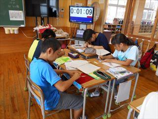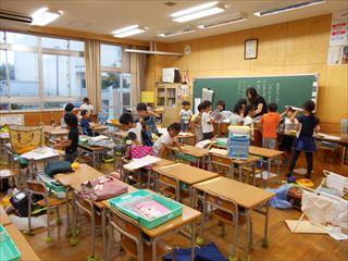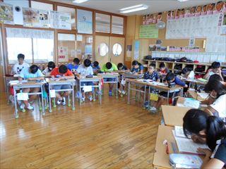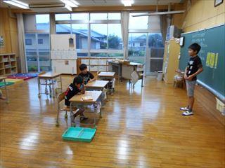 5年生です。先生の話を聞いたり、夏休みの出来事について発表したりしていました。