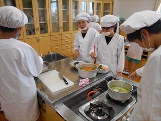先日の6年1組は調理している所でしたので、今日は食べている所を紹介します。