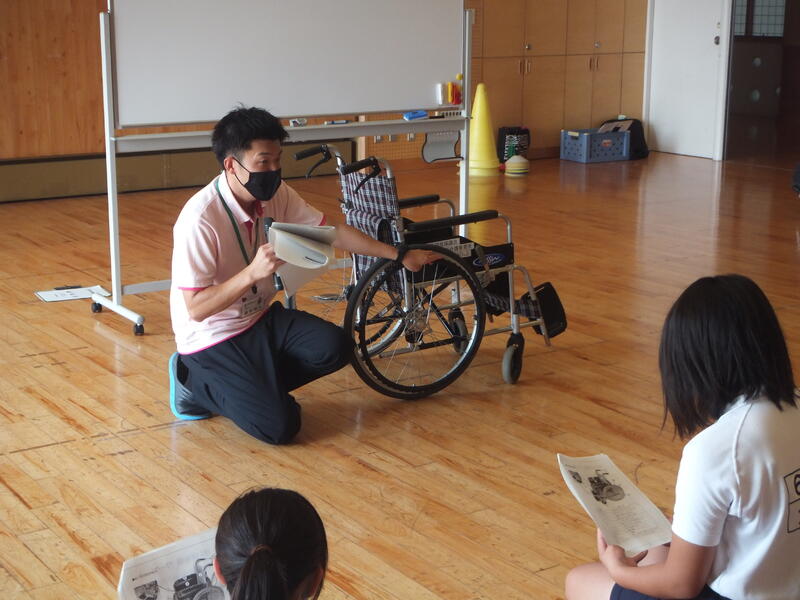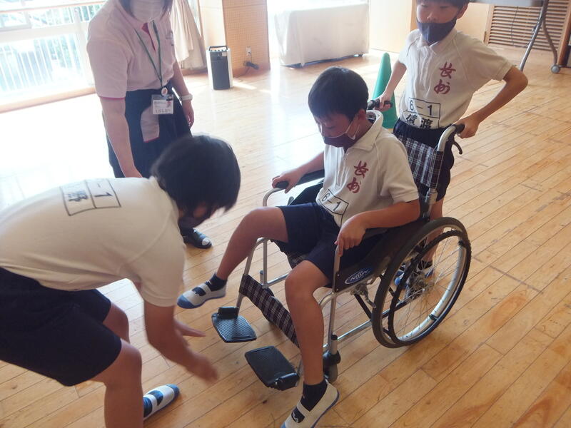 6月25日、町社会福祉協議会のご協力で、6年生が車椅子を通して福祉の学習を行いました。