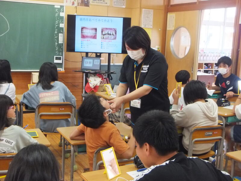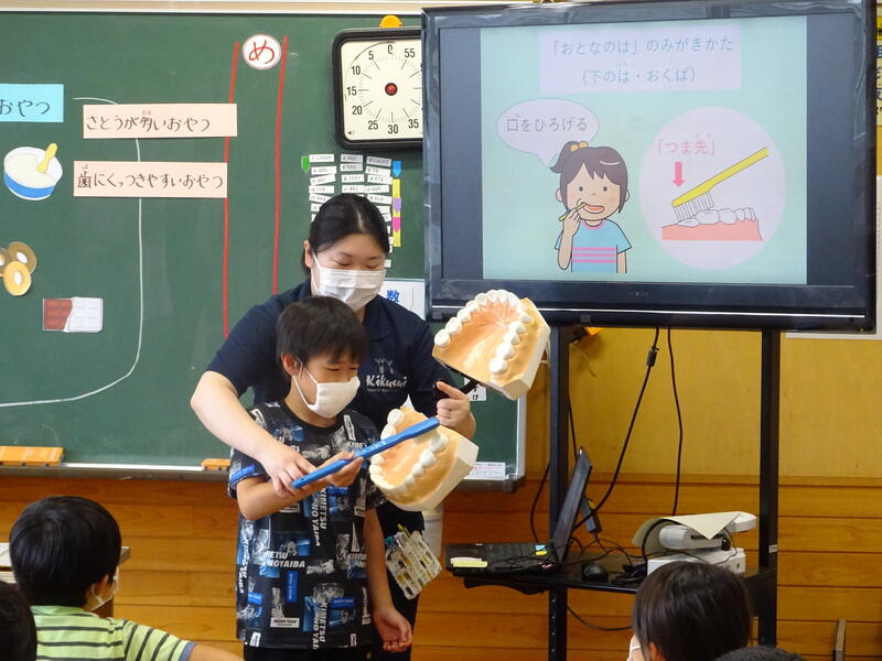 6月の歯の衛生週間にちなんで全学年で歯磨き指導を行いました。おうちでもしっかり磨きましょう。