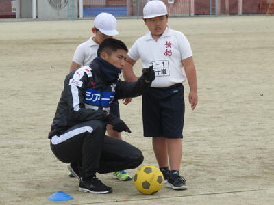 初めて見るサッカーのプロ選手に子供達もドキドキ