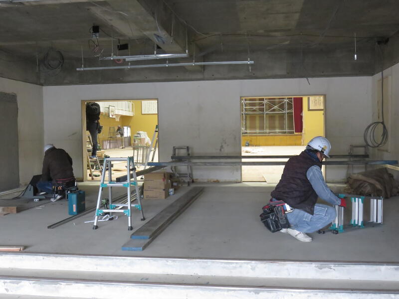設置当日は、この冬一番の寒波で氷点下の気温と風の中、大きな竹を切り、割、つないで
