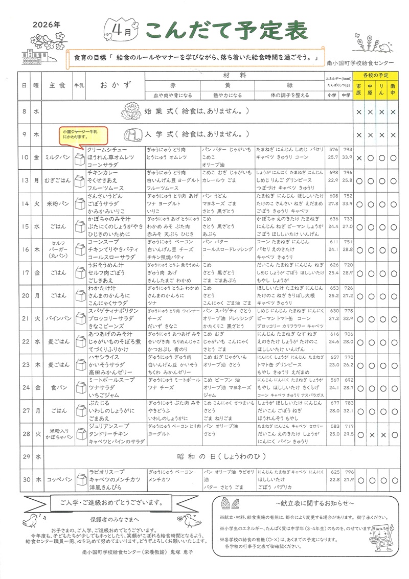 R8年度4月行事予定