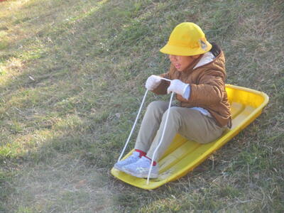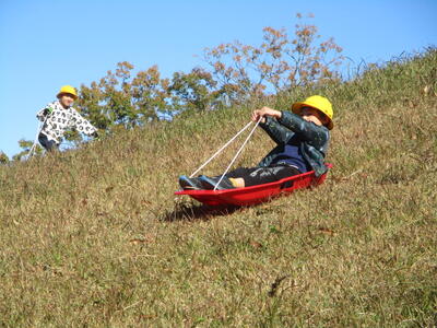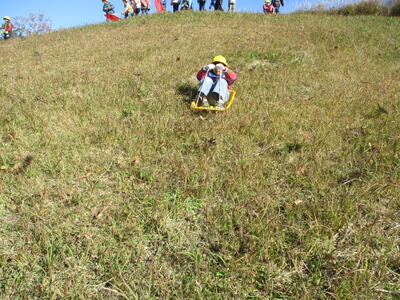 11月25日(月)、今年度2回目の合同学習会が行われました。今回は、りんどうヶ丘小学校へ行き、町内の1年生全員で、草スキーを楽しみました。この日は、ぽかぽか陽気で、思いっきり体を動かし楽しむことができました。前回は、やや緊張気味の子どもたちでしたが、今回は、随分慣れてきた様子が見られました。滑ったり上ったりを繰り返し、やや疲れたのか、帰りのバスは3人ともうとうと・・・気がついたら中原小学校に着いていましたとさ。