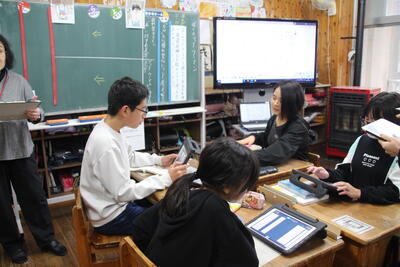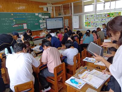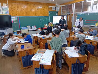 11月26日(火)、今年度最後の研究授業が行われました。5年生は「やなせたかしーアンパンマンの勇気」、6年生は「ぼくのブックウーマン」の複式授業。今回から、6年生は反転授業(予習型)にチャレンジするなど、両学年とも、家庭学習における読み取りを生かし、本時の授業が展開されました。学習リーダーを中心とした主体的な姿が見られる授業となりました。授業研究会では、6月にご指導いただいた白石スーパーティーチャーにご助言しただき、町の古庄指導主事にも叙述に即して読むことについてご指導をいただきました。