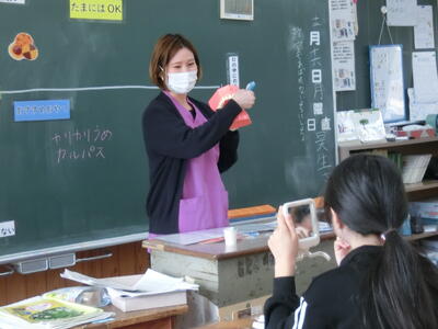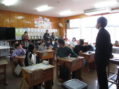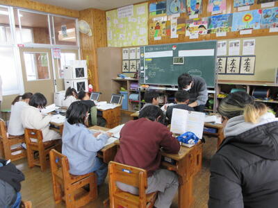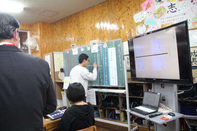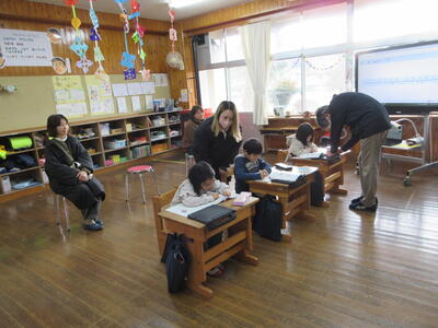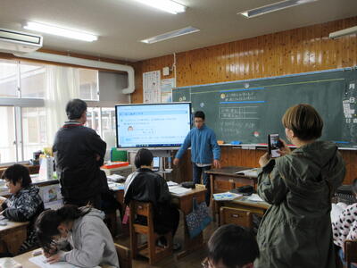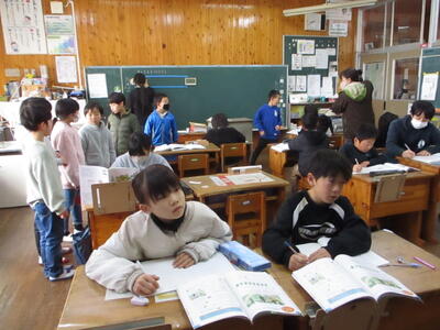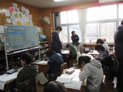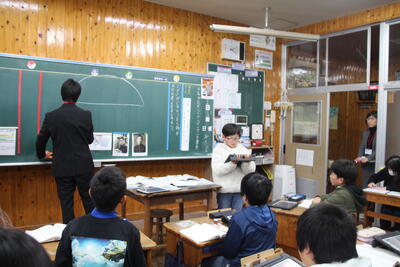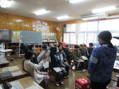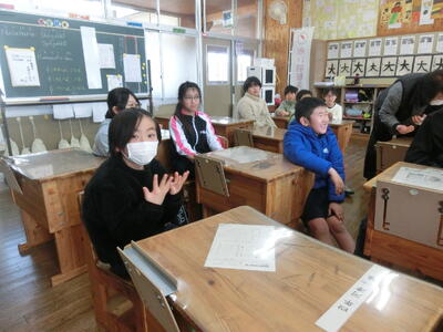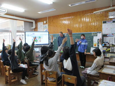 1月16日(木)の5時間目に、南小国中学校より3名の先生方が来校され、6年生の授業参観をしてくださいました。この日の授業は、「外国語科」でした。子どもたちは、エドウィン先生や本田先生の指導を受けながら、楽しく授業に参加していました。2月の体験入学を心待ちにしている6年生です。