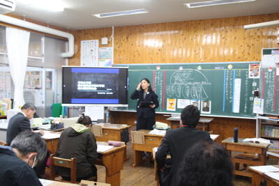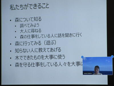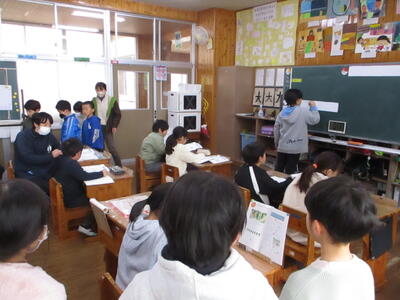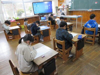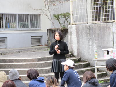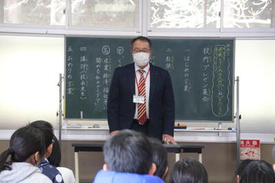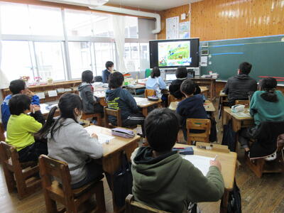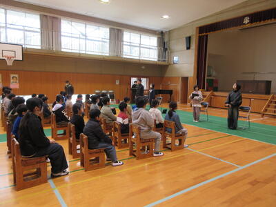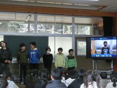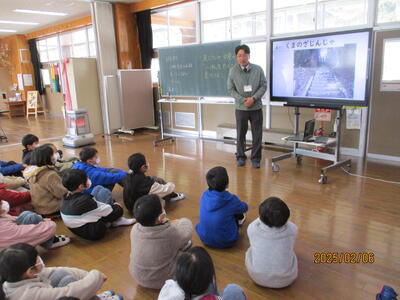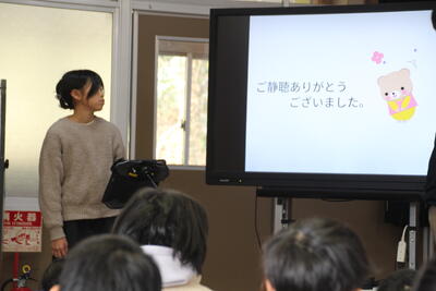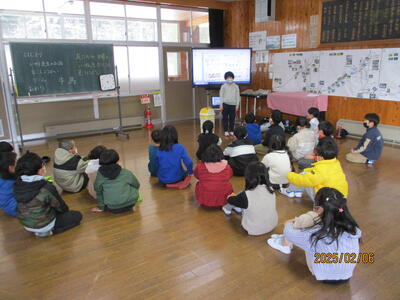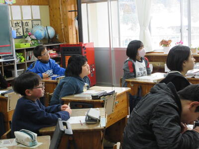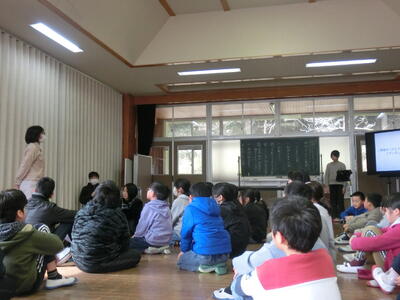 2月5日(水)は、南小国町の町づくり等についてご指導しただいている枝廣先生による講話が行われましいた。毎年、年2回ほど町の高学年及び中学生を対象に環境保全を中心としたお話をしてくださっています。今回は、森林についての話をしていただきました。「森の果たす役割」「木は切った方がいいのか?切らない方がいいのか?」「森を守る仕事」など、子どもたちは、初めて知ることが多くありました。森に生きる私たちに何ができるのかを真剣に考えていた子どもたちでした。