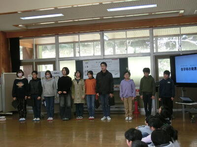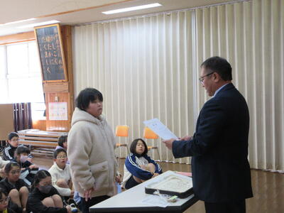 冬休み前、冬休み中、そして第4ステージに入ってから、子どもたちはさまざまなことを頑張っています。その頑張りを称え、表彰が行われました。それぞれの頑張りは、まわりのみんなにとっても励みになります。たとえ、入賞しなくても、自分の得意なことを伸ばしたり、苦手なことに粘り強くチャレンジしたりすることが何より大切なことですね。