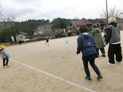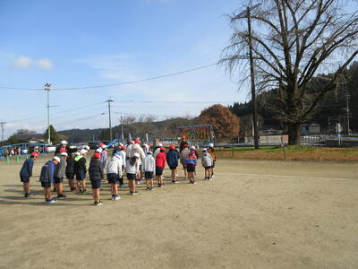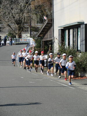 12月13日(金)は、絶好の持久走日和でした。古賀さんに教えていただいたウォーミングアップも含め、子どもたちは、これまでに何度も練習を重ねて本番に臨みました。保護者の方々や地域の方々のたくさんの応援が力となり、いつも以上に頑張って走る姿が見られました。応援の力は偉大です!おかげで、全員が見事完走することができました。持久走は、自分との闘いだとよく言われます。きついし、逃げ出したくなります。だから、欠席者も見学者もなく、全員が最後まで走り切るというのは、とてもすごいことなのです。
