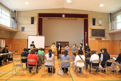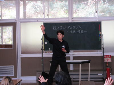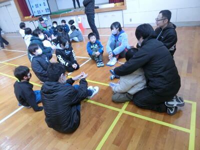 12月13日(金)の持久走大会終了後、保護者と先生たちを対象としたくまもと「親の学び」プログラムが実施されました。トレーナー(進行)は、保護者でもあり地域コーディネーターでもある鞭馬さんです。簡単なゲームで心をほぐし、テーマでトークをしていきました。今回のテーマは、「生活リズム」。その中でも「早ね・早起き・朝ごはん」についてお互いの悩みや解決策をグループでトークしていきました。最後に、各グループからの発表も行われました。