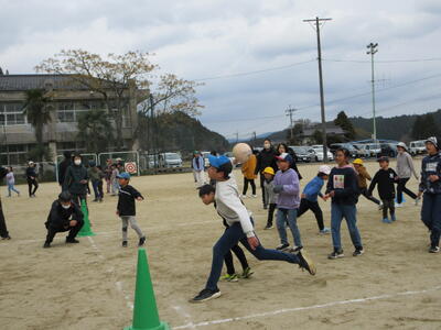 ボールを投げるたびに、ワァー!っと中原小学校の運動場に歓声が上がります。12月13日(金)の午後は、PTA主催による親子レクリエーションでした。レクリエーション内容は、6年生のリクエストにより「ドッジボール&けいどろ」。今回は、子どもたち(体育・運営委員会)に進行をさせてもらいました。保護者VS子どもでしたが、手加減なしの対戦に運動場は大いに沸きました。また、ところどころにミッションがあり、子どもたちもたいへん喜んでいました。最後に、午前中の「親の学び」プログラムを受けて、親子で手をつなぎ「言うこと・やること」のゲームも、ほっこりする時間となりました。子どもたちも、「お家の人たちと遊んで楽しかったです。」というの感想がたくさん聞かれました。