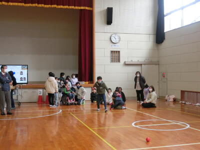 今回の交流会では、小国支援学校を訪問し、「すぎのこまつり」の発表動画視聴とレクリエーション(ボッチャ)を縦割り班ごとに行いました。6月の交流会の時より、さらに仲も深まっていました。