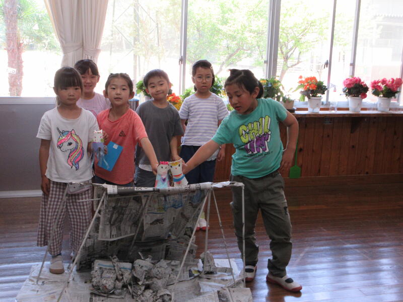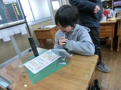 3~4校時には、1・2年生が図工で「ぱくぱくぱっくんをつくろう」ということで、下のような作品をみんなで作りました。似ている作品に見えますが、よくよく見ると、一人ずつ違っていて、み~んなすてきでしょう。みんなの満足気な表情からも、楽しかったことがうかがえました。