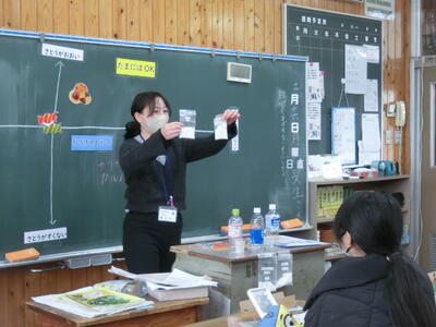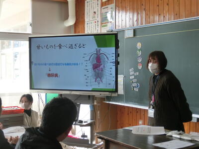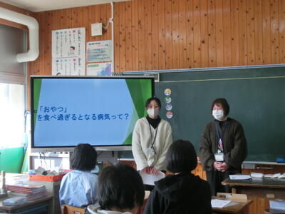 1月31日(金)は、町民課の方々に来ていただいて、5・6年生を対象とした生活習慣病予防の講座が行われました。今回は、生活習慣病の中でも代表的な病気である「糖尿病」について、具体的にわかりやすく教えていただきました。子どもたちは、日頃のおやつの取り方や飲み物の種類などについて見つめ直していました。こうして、子どものうちから生活習慣を見直し、病気に罹らないよう心がけていくことはとても大事なだと思います。町民課の方々、たいへんありがとうございました!
