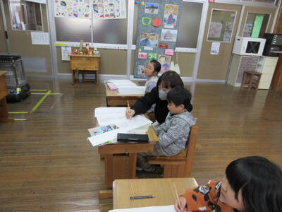 「複式授業のきまり」や「間接学習の進め方」など、学習リーダーを中心に子どもたちで学習を進めていくことを練習し、来年度の学習がスムーズにスタートできるよう積み重ねていきます。