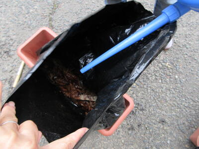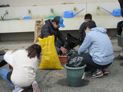 環境・放送委員会が、落ち葉と米ぬかを活用した肥料づくりにチャレンジしました。落ち葉に米ぬかを入れることで微生物が増え、落ち葉の分解速度が速くなるのだそうです。落ち葉と米ぬかを交互に入れしっかり固めます。そして、全体を湿らせるだけの水を入れていきました。春先に植物を植える際に、この肥料が活躍することでしょう!環境・放送委員会のみなさん、お疲れ様でした。そして、米ぬかの協力をいただきました保護者のみなさま、ありがとうございました。