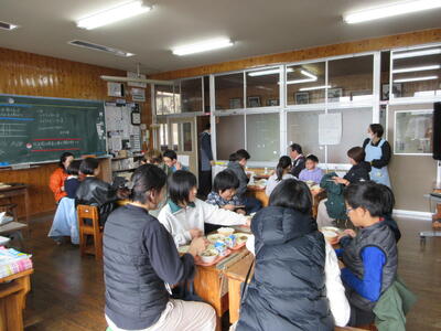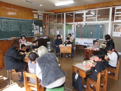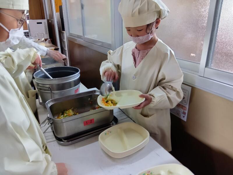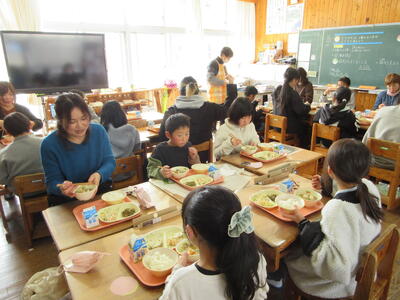 1月28日(火)に、保護者参加の給食試食会が実施されました。子どもたちは、4時間目(公開授業)から、ウキウキしながら授業を受け、給食の時間には張り切って準備を進めていました。この日のメニューは、「ご飯・太平燕・れんこんサラダ・手作りふりかけ」。給食センターから鬼塚先生にも来ていただき、給食中の様子を見たり、メニューの説明などをしたりしていただきました。この日は、やや盛りも多かったのですが、しっかり食べてもらうことができました。先週までとは打って変わって寒さの厳しい1日となりましたが、給食試食会の中原小学校は、心のお腹もぽかぽかでした。お忙しい中にご参加いいただきました保護者の方々、ありがとうございました!