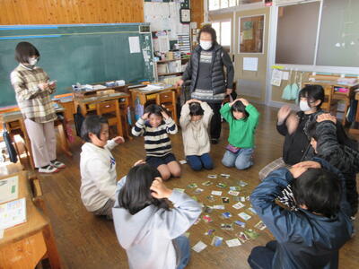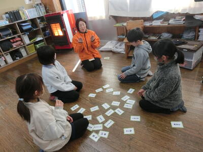 1月30日(木)の業間に、校内きよらっ子カルタ大会が行われました。「きよらっ子カルタ」とは、南小国町の良さを再発見するために、令和4年度に子どもたちから募ったカルタをもとに、町独自で作成されたカルタです。中原小でも冬の縦わり班遊びの一つとして取り入れています。短い時間でもたいへん盛り上がっていました。