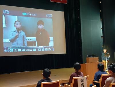 学校では、全校児童で3名の子どもたちを応援しながらオンラインで視聴しました。メモをとりながら、「いいね!」をたくさん見つけていました。そして、来年は写真やグラフも入れてみたい!とか、根拠をしっかり入れていきたい!など、早くも意欲をもっていた子どもたちでした。