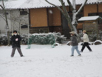 12月19日(木)は、朝方から雪が降り始めました。「雪の朝 二の字二の字の 下駄の跡」の俳句を思い起こさせるような朝の雪で、子どもたちが登校する時間帯もずっと降っていました。子どもたちは、登校後すぐに、運動場へ出て、雪を触り、雪だるまを作ったり雪合戦をしたりして楽しんでいました。校長先生や筑紫先生に雪を投げたり追いかけたり、心和む朝の中原小学校でした。