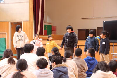 2月10日(月)は、新1年生の体験入学でした。新6年生になる5年が、前々から交流会の計画を立て、自主的に準備を進めてきました。当日は、3名のかわいい新1年生を迎え、楽しい交流会が行われました。在校生みんなに出迎えられながらの入場。ちょっぴり恥ずかしそうな表情もかわいいものです。その後、自己紹介や円になってのゲームが行われ、親睦を深めることができました。4月の入学式を、中原小学校のみんなで楽しみにまっています