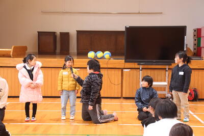 2月13日(木)の業間に、児童集会が開かれました。今回は、保健・給食委員会による感染症予防対策のについて発表できた。事前に自分たちで作成した動画をもとに、予防を呼びかけてくれました。楽しくわかりやすい動画となっており、参加した子どもたちは、早速休み時間に実践にうつす姿が見られました。