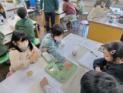 12月2日にクラブ活動がありました。今回は、熊本県花き園芸農業協同組合の方々の協力を得、フラワーアレンジメントの作成をしました。準備していただいた花を、自分のセンスできれいにアレンジしている子どもたちでした。製作する部屋は、花の良い香りが充満し、きれいな色にあふれた空間となっていました。製作を進めるときの児童の表情、完成したときのそれぞれの表情が印象的でした。