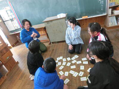 第4ステージが始まった途端に寒さが増し、早速雪も降りました。子どもたちは、雪の中喜んで登校し、笑顔で雪遊びに興じていました。こうして季節を感じながら過ごすことができるのも、学校の良さの一つですね。また、室内遊びでは、休み時間に、南小国町で作成されている「きよらっ子カルタ」をし、南小国町の良さを再発見している子どもたちです。1月下旬には、たてわり班で「きよらっ子カルタ大会」が行われますので、他の学年とカルタ取りをするのも楽しみですね。