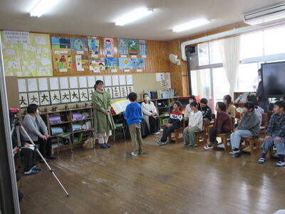 朝の活動で、読み聞かせがありました。子どもたちは、興味を持って、しっかりと話に聞き入っていました。