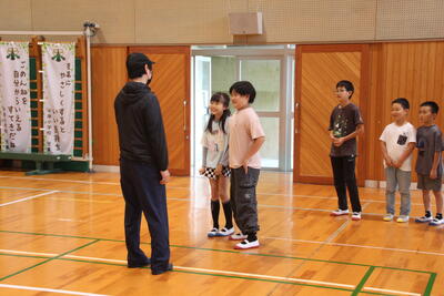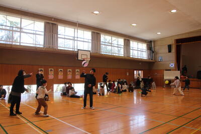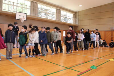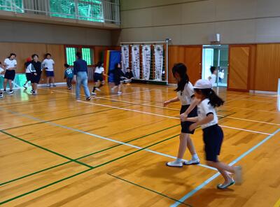 梅雨に入り、雨天の日が続いています。昼休みに外で遊べないので、体育・運営委員会が体育館での全校レクリエーションを企画し、実施しました。 2人組で手をつなぎ逃げ、それを鬼役の児童が追いかけ、つないでる手を手刀で切ったら鬼に捕まるという鬼ごっこの1つです。鬼が手刀で、つないでる手を切るときに「シャキーン」と言わなければならないので、「シャキーン」という名前でした。楽しそうに参加する児童の姿がみられ、雨天時の気分転換になっていました。