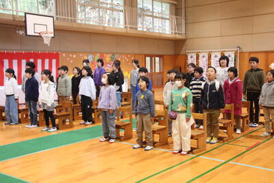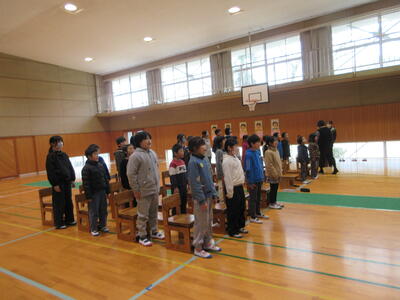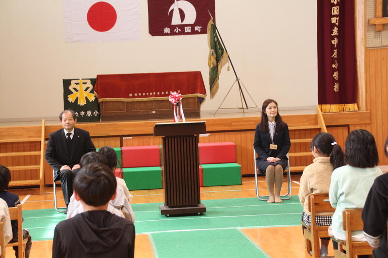12月23日(月)朝は、南小国町では氷点下5.9度という冷え込みの厳しい朝でした。そんな中、子どもたちは、「明日から冬休みだぁ」と笑顔で登校してきました。中原小学校では、2時間目に冬休み前集会が行われました。校長先生からは、第3ステージでの子どもたちのがんばりや冬休みの過ごし方などについてお話がありました。その中で、年末の片付けに触れられ、物を片付けることは心の整理につながるということを聞き、子どもたちの中には、「今日帰ったらすぐ片付けをします。」という声も聞かれました。また、担当の先生方から冬休みの過ごし方について大切なお話があり、子どもたちは真剣に耳を傾けていました。16日間の冬休みを元気に過ごし、来る2025年1月9日にみんなそろって学校に来てほしいと思います。