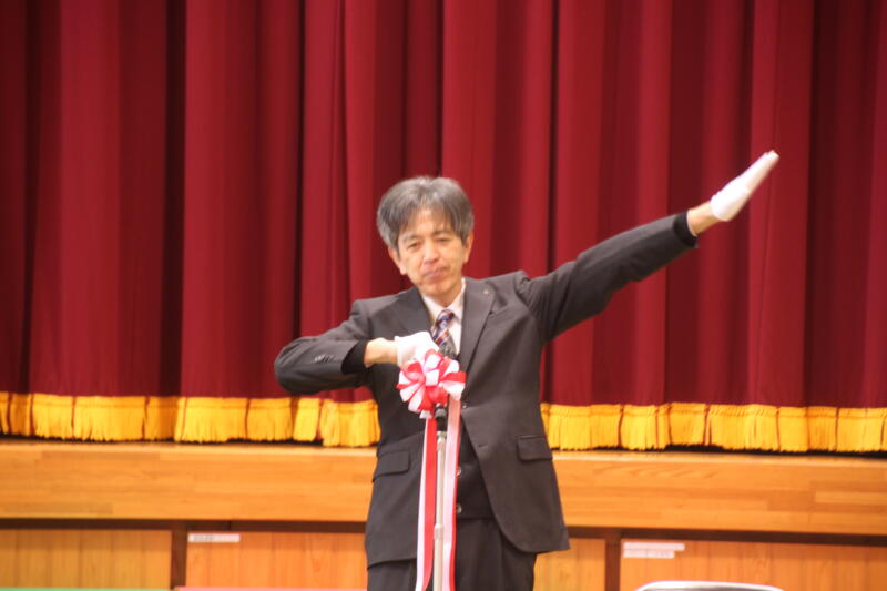本年度の運動会のスローガンは「最後まであきらめず、笑顔で楽しむ運動会」です。上級生を中心に子どもたちが考えました。
