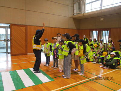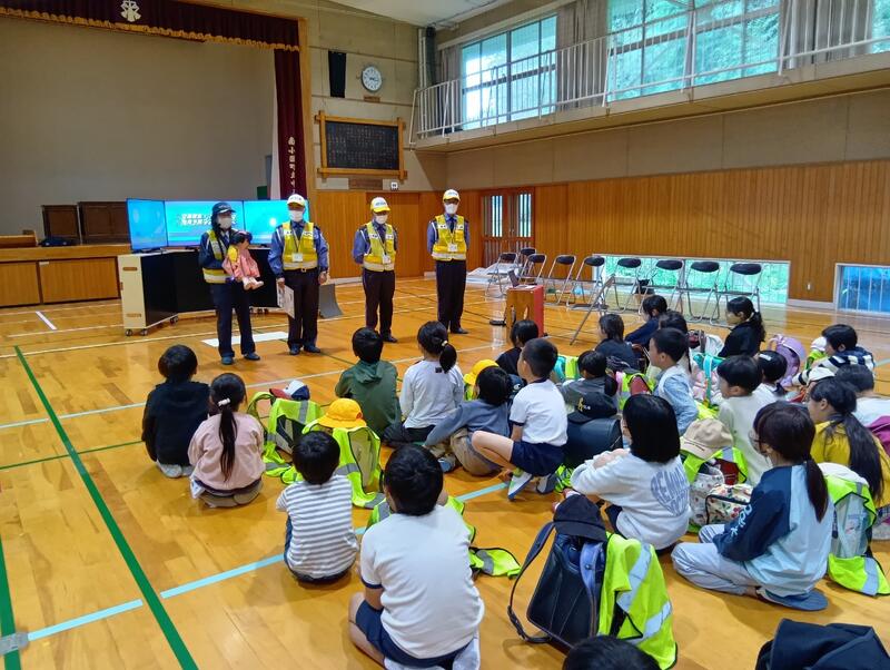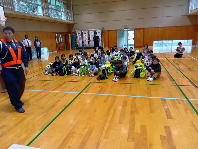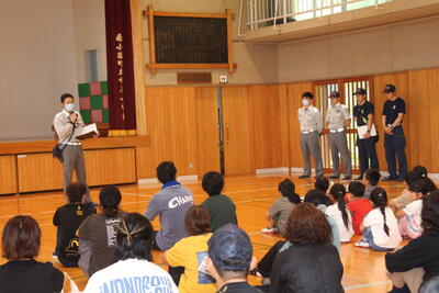 6月12日(木)に不審者対応の避難訓練を小国警察署の方の協力のもと実施しました。不審者への対応、警察への通報、避難などの訓練を行い、警察の方からアドバイスをいただきました。 また、訓練の後は、体育館で警察の方より、通学時や遊んでいるとき不審者に出会った時は「大声を出す」などの対応の仕方の話を聞き、そのあと実際に大声を出す訓練を行いました。また、教室に戻り、防犯ブザーを実際に鳴らし、確認を行いました。