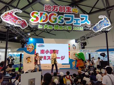 万博にて 南小国町のプレゼン ↓ 南小国町のブース ↓