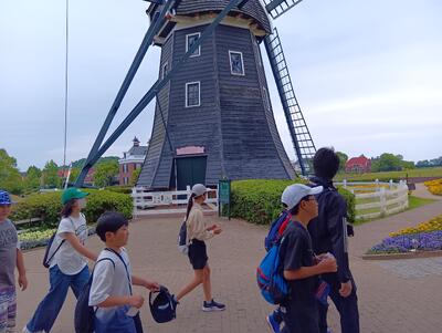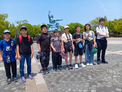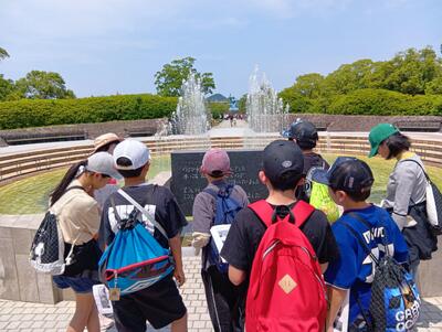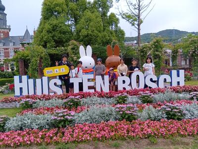 1日目は、平和学習です。講話を聞き、平和公園および周辺のフィールドワークを行い、追悼平和記念館を見学しました。平和について、自分は何ができるかを考える機会になっていました。2日目は、ハウステンボスの見学でした。午後からは雨が降り出しましたが、自分たちが希望する見学は、概ねできていました。万博研修からあまり日数があかない中での修学旅行でしたが、元気に子どもたちは参加していました。