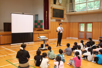 南小国町役場各課の職員の方が講師となる「出前授業」が今年も始まりました。5月15日には、3年生を対象とした、まちづくり課による「『きよらの郷』(日本で最も美しい村連合)」の出前授業、21日には、4年生を対象とした、建設課による「南小国町のきれいな水」の授業がありました。2つの授業とも、子どもたちにとって、ふるさと南小国町について、知らなかったことを知る機会になりました。(写真は「南小国町のきれいな水」の授業風景です。)