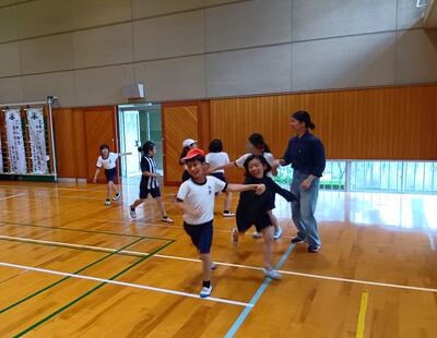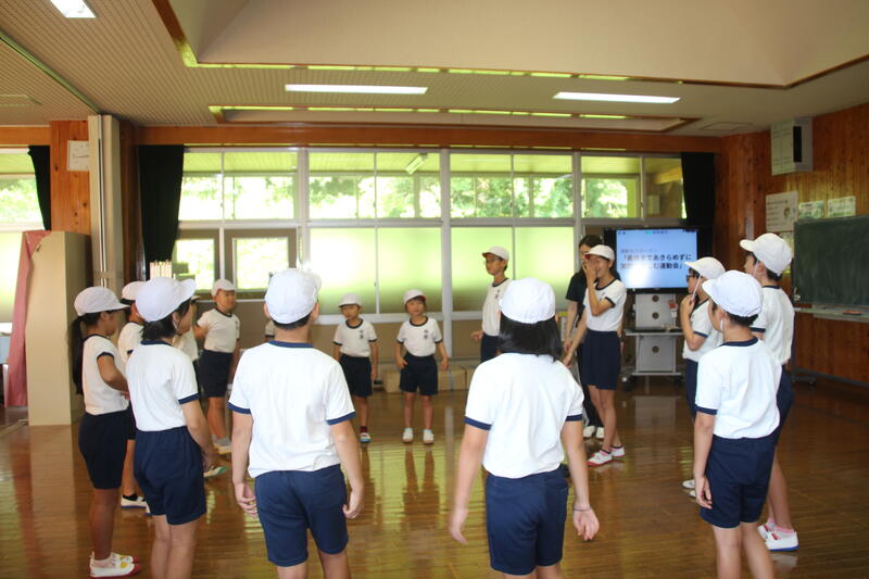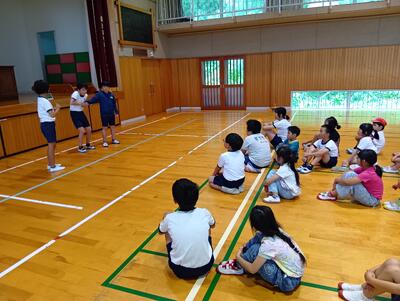 後半のレクリェーションでは、4つの縦割り班の5・6年生が立案したレクをしました。前回のリハーサルで課題を見つけ、改善されたものになっていました。体育中、笑顔でいっぱいになっていました。