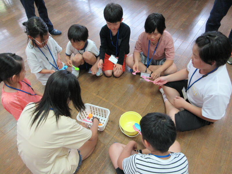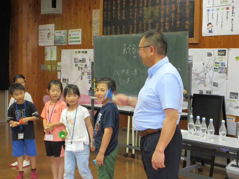 23日(月)の放課後子ども教室において、あそBe隊の薄井さんが本校の放課後子ども教室に来られて、楽しい楽しいひとときを過ごさせてもらいました。歌から始まり、いろんな活動を楽しみました。ハーモニカならぬハナモニカに、子どもたちは何ともいえない反応をしていましたが、その後、ハンドベルで楽しんだり、じゃんけんゲームで楽しみ、最後は歌で締めました。ほんとうに楽しいひとときで、子どもたちのすてきな笑顔がいっぱいの時間でした。