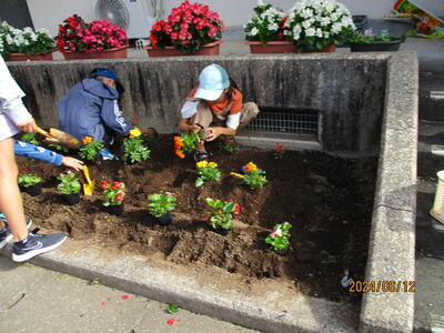 朝のボランティア活動の時間に,9日のふれあい日曜学校の時に植えることができなかった花苗をみんなで植えました。サルビア・マリーゴールド・ベゴニアの3種類を植えました。花の交流会で経験したばかりでしたので,手際よく植えることができました。たくさん咲きほこり,夏の暑さを和らげてくれるに違いありません。