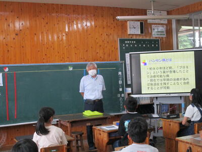 6月25日(火)の3時間目に,南小国町教育委員会の楠田先生が,5・6年生を対象に菊池恵楓園訪問に向けた事前学習をしてくださいました。長年学んでこられたことをもとに,スライドを見せながら話してくださいました。ハンセン病について正しく知ることの大切さ,力強く生き抜いてこおられた入所者の方々のことを学ぶことができました。事前学習を踏まえた上で,7月に3小合同で恵楓園歴史資料館を見学し,さらに学びを深めていきたいと思います。