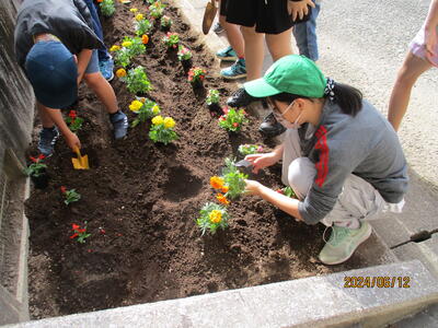 朝のボランティア活動の時間に,9日のふれあい日曜学校の時に植えることができなかった花苗をみんなで植えました。サルビア・マリーゴールド・ベゴニアの3種類を植えました。花の交流会で経験したばかりでしたので,手際よく植えることができました。たくさん咲きほこり,夏の暑さを和らげてくれるに違いありません。