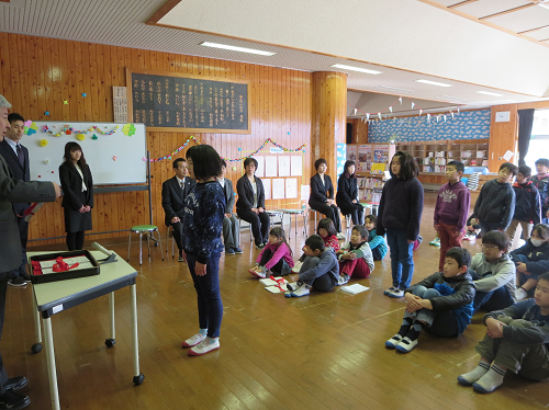 修了証を受け取って、後期のめあての反省とこれから頑張りたいことを、各学年から一人ずつ発表してくれました。