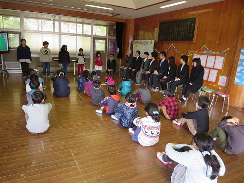 すでに覚えていた先生方をの名前で呼びながら、中原小学校の行事、地域の伝統や自然を織り込んだ紹介、これから自分たちが頑張りたいことをノー原稿でお伝えしました。